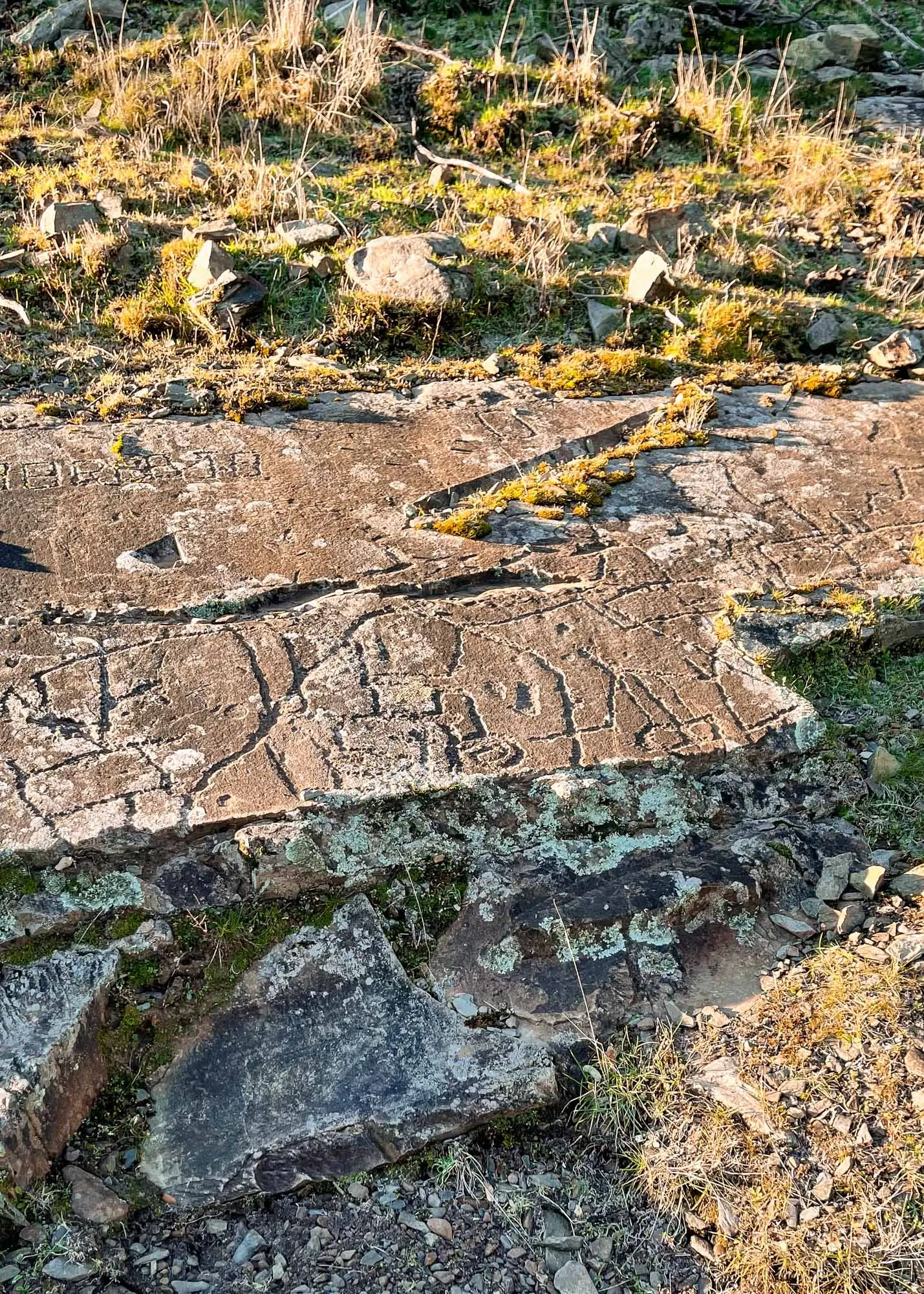 En la margen derecha del río Hurdano, no lejos de su nacimiento en una zona muy abrupta. Son grabados incisos...